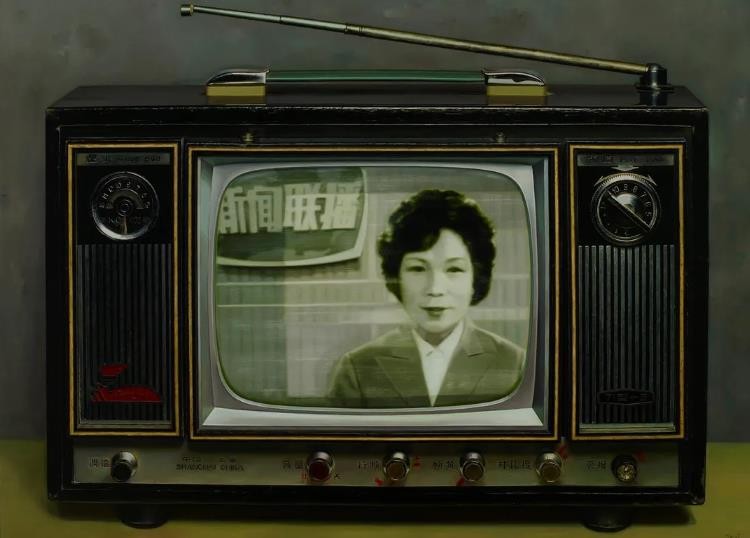 那时,陈曦才二十多岁,风华正茂,青春的果敢与朝气随着作品洋溢着,一展充溢的才华与才情。但陈曦并不满足,并不停步,她那股豪气鼓拥着她前行,鼓拥着她四方游历,将艺术的视野遍布海外,思考艺术的意味,夯实现实绘画的深度。她由生活的表现主义转入历史记忆的深挖,这一转型不是守成者所为,因为这意味着冒险,意味着又一次突破。陈曦总是秉持那股豪气,做,做起来。她坚持五年研究、整理、分析当代的重大历史节点,她不是做档案研究,也不是做情景描摹,而是用一种苍茫的历史之眼,回望那些影响时代、影响情感、影响生活的历史片刻,它们是不能忘却的瞬间,它们是时间之谜,是未来之兆。陈曦仿佛未来的考古学家,一一爬梳这些历史记忆,既是探知现实何以为,也是用图像思辨所以然。这些电视图像早已溢出了它们的屏幕,向着纵深透析着我们记忆中的秘密。
