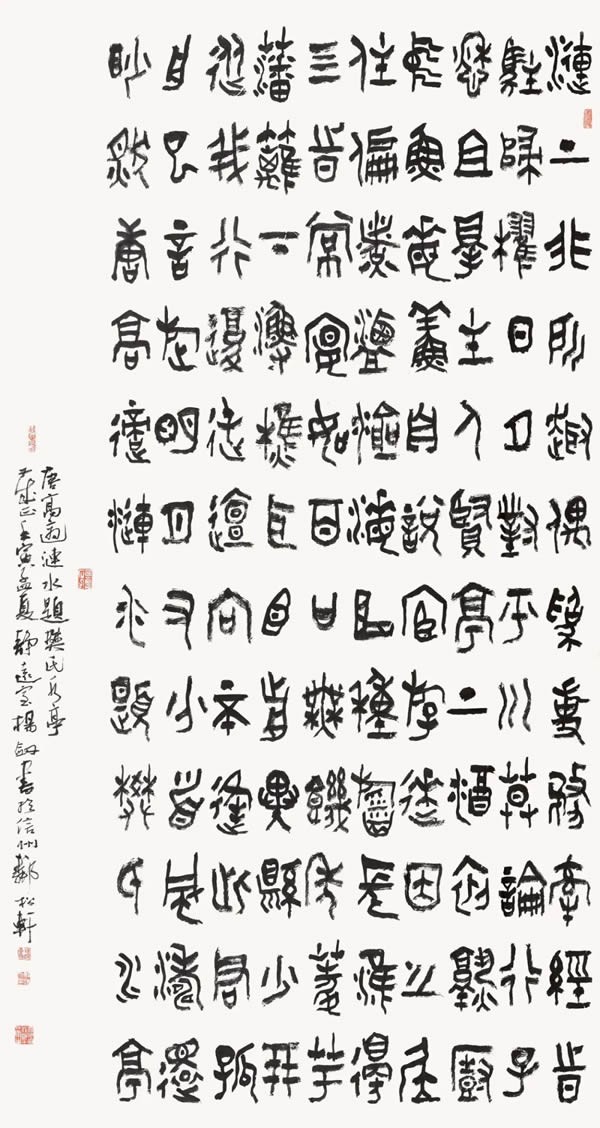有美,无论是生命还是生活,意义就不同寻常。美和爱情一样都是奢侈品,或许我们的生活还有很多丑与恶,但是不是还有艺术吗?不是还有书法吗?也还有善良和爱,因此,我们并不悲观。任何艺术的呈现都不是无缘无故的空穴来风,都是生命的片段诉求,是另外一种形式的表达。今天这里表达的是书法,是全国美术馆界书法人的一种情感出口。或许和你看到的和其他群体展览一样或不一样,这不是主要的,主要的是,告诉大家,美术馆有人在写字,在书法,而且还写得很好。因为在美术馆工作,他们见识会更便利的开阔一点,因此或许他们的字里有另外一种味道,对书法的表达方式或许有另外一种偏执,但此刻的他们都是最精湛的自己。淮安的展览是第三站,依惯例增加了咏淮的章节,这不是俗套,是一种热爱。此展想给观者一个启示:美术馆人的墨语有其动容可取之处,是一种对美对世界的温存感念,人们的温暖幸福有赖于平凡的咏叹。就像天空,或许一无所有,但给人安慰!