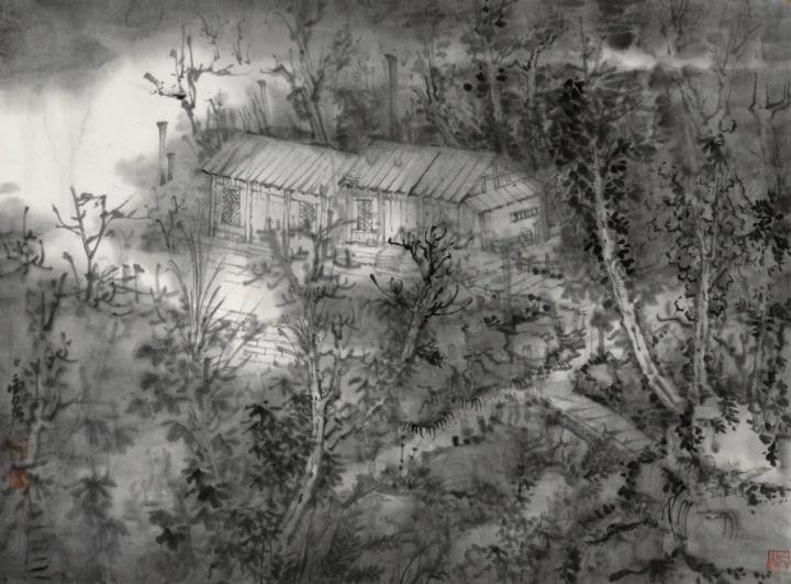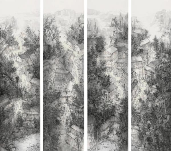 “山居吟”取宋末元初音律家毛敏仲隐居山林时所作名曲《山居吟》之意境与追求。“山居吟”者,深居山林,与世无争,高山为屏,清流为带,天地为庐,草木为衣,徜徉其间弗牵尘网……。山之壮阔,水之婉约,养心养性。古之贤者,文人墨客对与山水为伴,林木为友,晴耕雨读,其乐陶陶的山水田园生活,莫不情有独钟、心驰神往——蜀有“卧龙”山野耕读,淡泊宁静;晋有“五柳”东篱采菊,南山悠然;唐有摩诘隐居辋川,空山新雨,明月松间。今曹栩源、万胜华以中国书画的传统笔墨挥洒其林泉之心。