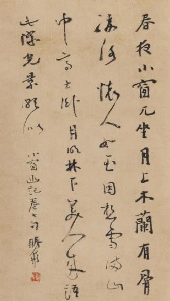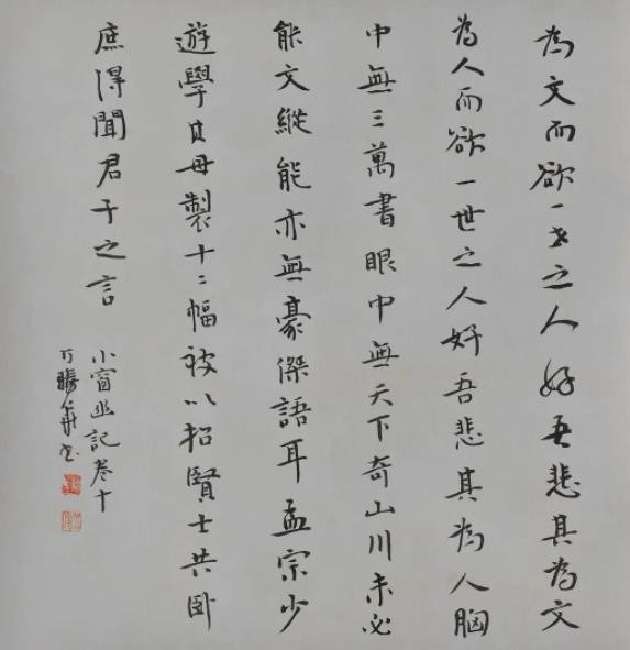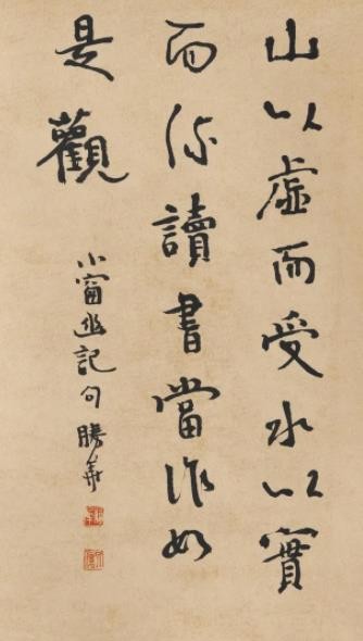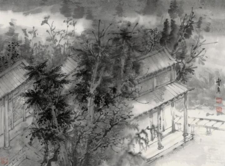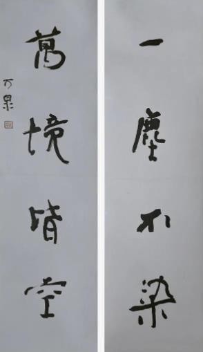 人们对“书画同源”各有见解,我以为此“源”或者说二者之间的联系更应是中国画的创作主体即创作者的终极审美追求及审美观照是一致的或者说是极为相似的,这在曹栩源、万胜华身上有很好的映证。两人皆将书画融会贯通,又各有侧重,均为当今书坛、画坛的中坚力量,技法方面已毋庸赘述,但无论是曹栩源的山水还是万胜华的书法作品扑面而来的那种清净典雅、苍古恬静的气息是一致的,耐人寻味的。我觉得在当下的今天,再用“文人画”“文人书法”去阐释他们的作品是有失偏颇的,其“文心”“自然观”才是更值得我们关注与尊敬的。