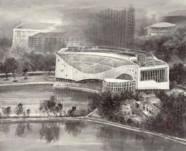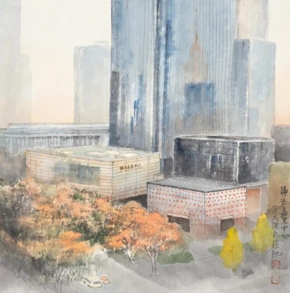 “城市景观”进入当代山水画创作领域确实给艺术家带来了新的挑战。如果说山水是因人而异的风景,是人与天地之间相互对照的心灵往还,那么,我们触目所及的所有环境与空间都应该是山水画艺术灵魂穿行的实地,也是笔墨畅怀的精神家园。就这一角度而言,乐震文、张弛近年来持续不断所坚守的“城市景观”题材创作,也就有了超越具体的时间空间的文化上的深远意义。
