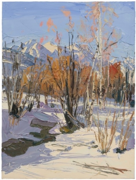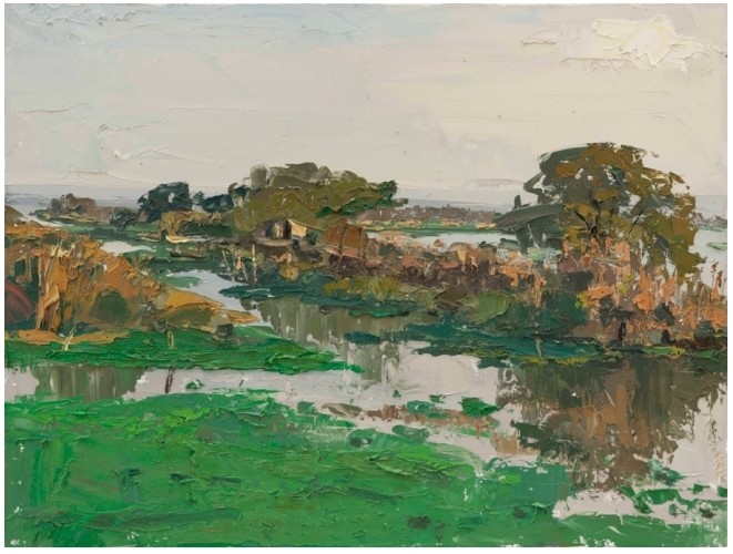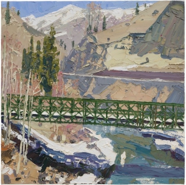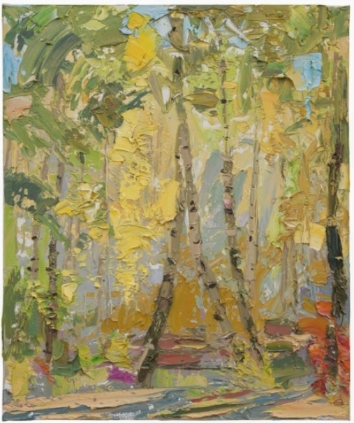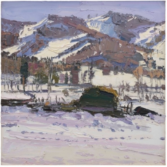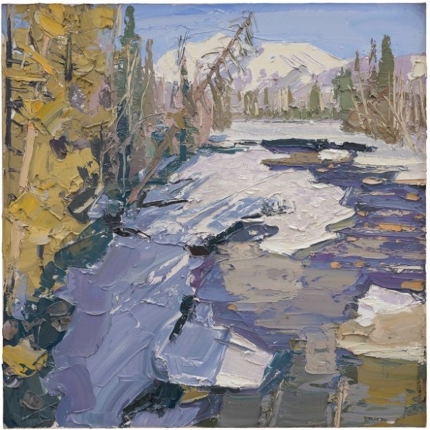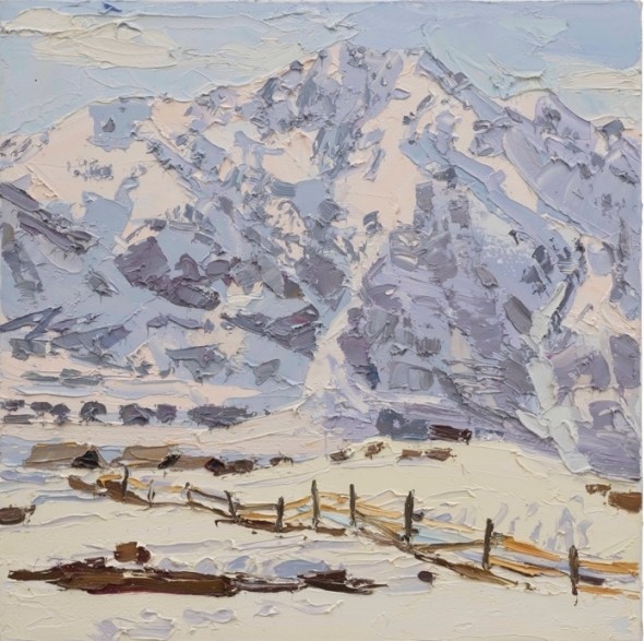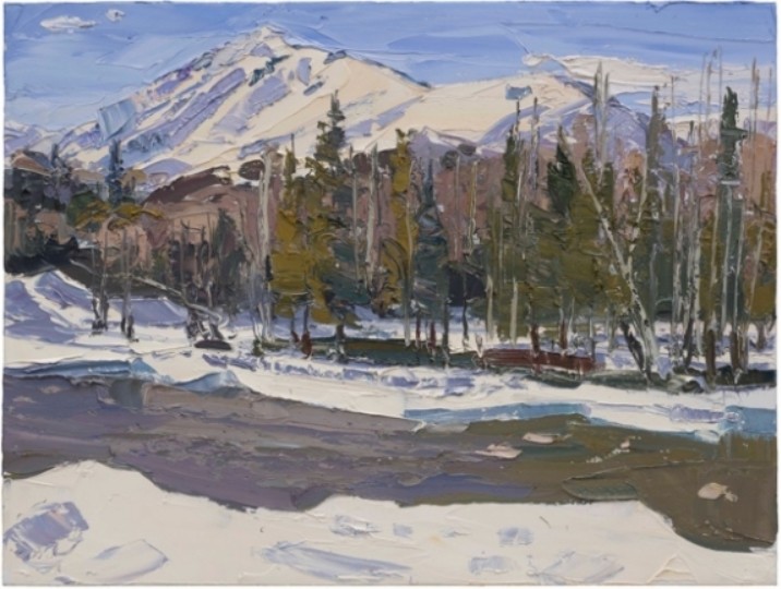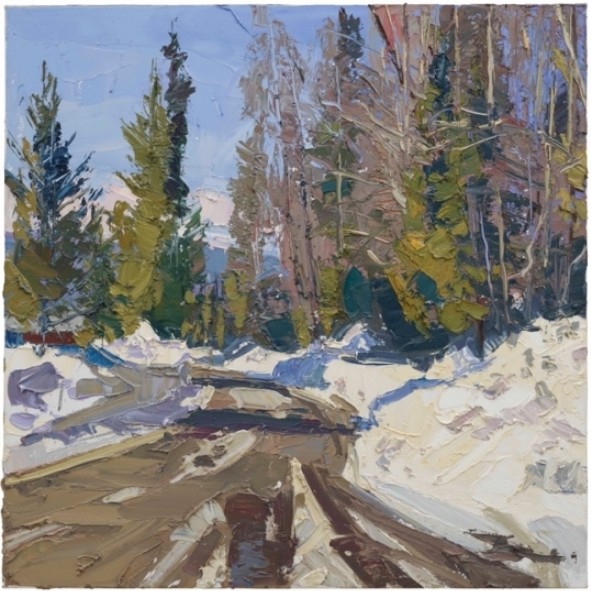 不妨想象一下,长久的画室劳作对艺术家近距离凝视所形成的某种视觉压迫。袁元正是从这里生发出摆脱城市视觉围城的渴望,他出走城市,到陌生的可任意远眺的地方,去自由伸展他的视距、调节已经凝滞了的瞳孔。在这些远景中,他在那些被称为风景画的画作上留下了他观看的痕迹——聚焦于中、远景,力求看得清晰和分明,漠视那些近景之物的干扰。在这些色彩大关系中,他的视觉神经极其敏锐,尤其是远处冰雪反射的天光及丛林,是冷中微暖的一丝生命的悬浮。其精彩也便在看似简略的刀笔下某种色调微差所形成的比对或呼应,人们能够从中感受到画家恣意而严谨的形色呼吸。