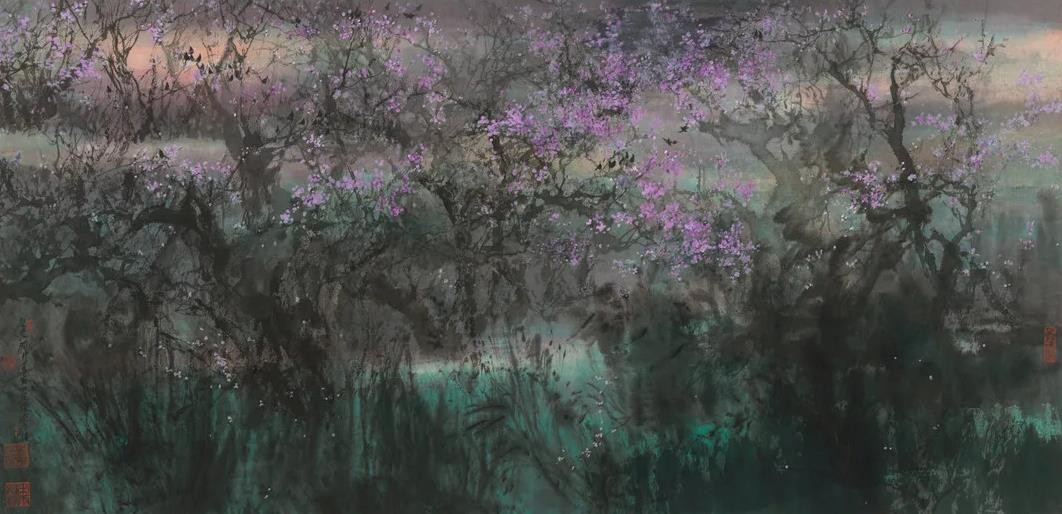 宋雨桂(1940-2017)是20世纪以来中国画坛上的一位艺术大家。他生于山东,长于东北,既有侠肝义胆的气度,又有纵横四溢的才情。宋雨桂的艺术启蒙自母亲,又得益于民间绘画的基因,由此奠定了生动活泼,亲近自然的艺术底色。鲁迅美术学院的版画系的训练为宋雨桂日后的水墨艺术创作——尤其是大型创作,打下了坚实基础。跨媒介的学习经历,也促使宋雨桂更重视画面的层次、肌理和创作的过程。他的水墨画博采众长又能融会贯通,技巧精湛而又变幻莫测。他的山水画借山水景致,得山水气势,立不凡意境;他的花卉与山水意境相通,倚仗笔墨意态,擅于精心布局,色墨相融,自成一派,形成了独有的宋氏风貌,为当代中国画创作提供了独特范式。