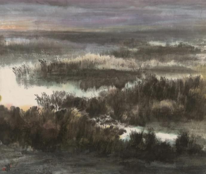 展览分为“大美幽观”“与花结友”“心与山通”“情在江山”四个板块,重在剖析宋雨桂作品之美学内核。“大美幽观”,呈现最具特色的墨荷作品,是宋雨桂对水墨创作弃旧迎新、变法探索的重要体现;“与花结友”,可见艺术家在技法、风格上的尝试体悟,以及中西文化传统的碰撞和交融;“心与山通”,是宋雨桂对乡水湿地的真情实感,也是拓展创作的自我定义与自我阐发;“情在江山”,是对造化风物的汲取提炼,将花卉植物化入山水自然,探真求源。