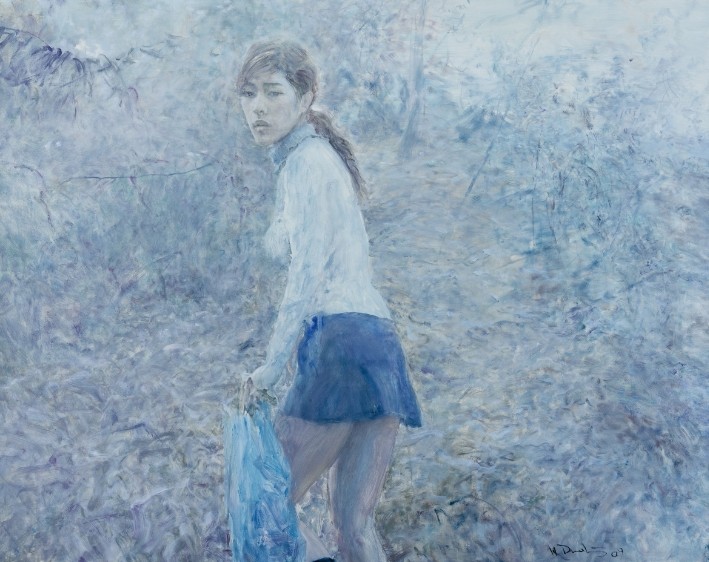 多年来,无论在地理还是创作上,何多苓都显现出一种偏安感,他与当代艺术中心动态的若即若离则反衬出他在绘画语言上的“强势”与坚持。其画面中所谓的个人世界与经验,反馈出他身处的自然、社会与人之间的关系,这种非叙事的无声以一种相互照见的关怀突破并超越了叙事的有声。