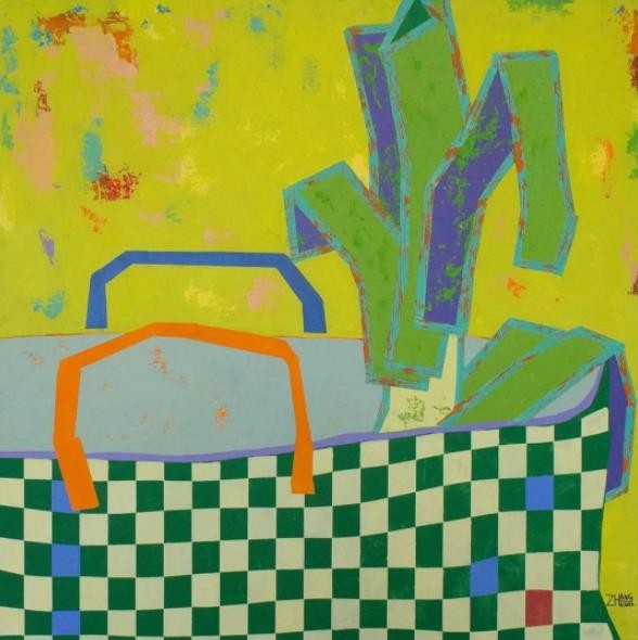 张哲在绘画语言上做了很多尝试,就像一个讲故事的人尝试用不同的方式诉说。现在她放弃了过多的细节描述,像X光射线一样,穿透日常的肌肤,只看到线条和形状,那是支撑着生活真正的骨骼,简单却真实。