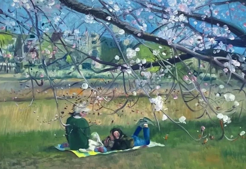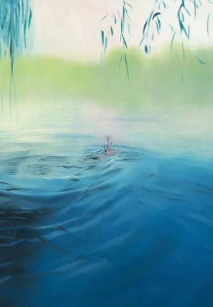 在洒满阳光的步道上奔跑的人,在晨光熹微的水中游泳的人,在登山途中与自然对话的人——这些画面中,我试图捕捉人与自然的融合。这种融合,在中国古代绘画中曾是寻常之事,而在当下却成了一种奢侈。作为一个画家,能通过画笔提醒人们关注身边的生活,感受自然的光与美,已是一件不易之事。