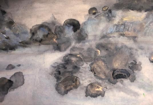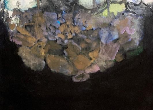 在黄隽卿的这些作品中,有水墨感,有油画的肌理与笔触,有综合材料的质感,有堆积感,有彩墨感,有韵味,画面深沉而廓大……,这种画面效果,向我们展现出的是一位独立而自信的创作者。这些作品,包含着自觉的,近乎无意识的交融;也有种自然而然的独异感,这种独异感正是我们这个时代的艺术家们每个人都在苦苦追寻着的。为了独异,就不得不不断蜕变,并且不断深化、精致化。黄隽卿本次作品展,显然是这个过程的一次完整呈现。