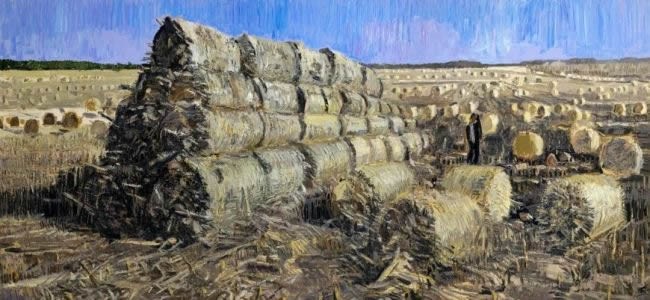 王建国曾在现代都市主题上沉潜创作,以雄阔的画风表现了长春这个东北城市的历史遗存和文化风貌,尤其画出了城市转型变迁中多种因素交融的复杂情景,画出了现代生活中人与群体、人与社会的多样关系,从而在当代油画画坛卓成一家风格。近十年来,他从都市走向乡村,从东北走向全国各地,以黑土地为新的立足点,坚持在大地上行走,以创作意识贯注写生,在写生的现场实现主题叙事,形成了作品充满自然生命生机和生活气象的崭新意境。他笔下的大地山川、葵花高梁、劳作人物都取自当代的感受,更重要的是,他的艺术语言洋溢出蓬勃的时代气象。
