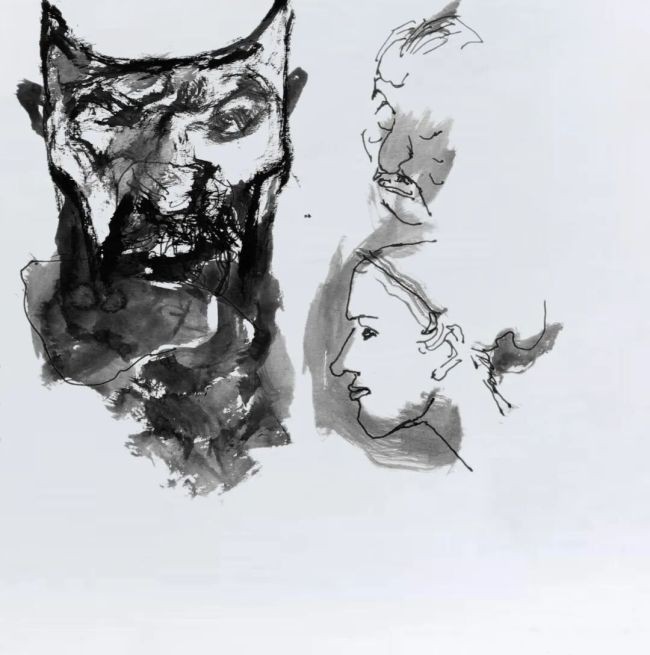 观陈钰铭先生近期速写手稿,于视觉与文化审美中凝练而“神化”,展现出从具象再现幻变为抽象表现的历程,即由物象客体的“画”化,向意象主观的抽象范式呈现。其画风多年来以悲悯怆然、气势磅礴、能量浩荡而直入心魄;至若明快芊芊、轻松柔滑之风,早已不入其理。