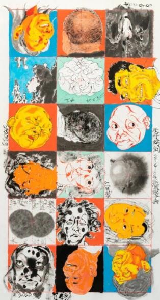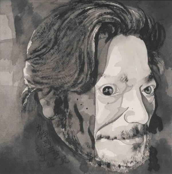艺术界的朋友无不知道,作为燕赵出生的当代人,方力钧不仅重情义,也喜欢广交朋友,其中包括艺术家、批评家、收藏家与各艺术机构的负责人等等,这一点不少人都在《方力钧——100个人口述实录方力钧的艺术历程》一书中谈到了,而且,他常常会在与朋友聚会期间以大特写的方式拍下一些朋友的照片——早先是用简易相机,后来则多用手机。起初很多人以为他是拍得好玩,没想到他随后以其为基本素材,画出了一大批水墨肖像作品。据艺术家自己介绍,之所以如此而为,一是由于他经常奔走于各地,选用很好携带的水墨媒材有利于他用空闲的时间作画;二是他以这种特殊的方式与朋友们进行交流,既画起来得心应手,也展开了一些必要的回忆。但明显与传统的写生肖像类作品是不同的:就画面构图而言,来得极为随意放松——有的甚至是从不同方向画出,很像一些画家在速写本上作画一样;而就人物造型而言,则具有特写、夸张与略带变形的特点,既在视觉上很像表现对象,气质也抓得特别准,可见他对所画的朋友都有着不是一般意义上的理解。其中一些带组合的图像,还携带着特定的故事、信息与经历,乃是研究中国当代艺术史的重要文献。比如《栗宪庭、张颂仁、方力钧像》就与著名的“后89展”的举办有关。而作品《2016-2018》则将一些画家、收藏家、批评家、机构负责人画在了一起。我想,这显然不仅仅限于友情上的原因,更重要的是,这其中还包含了特定的历史信息。至于在表现手法上,则是层出不穷,让人眼花缭乱,不过,虽然手法不一,但都具有鲜明的方氏特点。即其既不是在传统写意画的艺术框架内寻求变化;也不是在徐悲鸿所创立的的艺术范式中寻求创造,故显得极为另类。过去我一直认为,造成如此局面,可能与方力钧对传统水墨与写实水墨的表现规范不是太了解有关,他大约是凭着聪明与大胆,巧妙地将油画与版画创作上的一些特点转换到了水墨创作上。