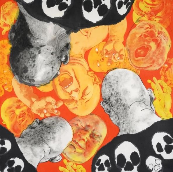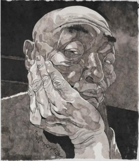就在我努力思考这一问题时,方力钧与巴塞尔艺博会前主席霍珀于2016年6月10日来到了合美术馆。当晚在谈到艺术创作的问题时,他一句不经意的谈话猛然点醒了我。他这样说道:“创作者进入高潮时是不拘泥于形式的。”他还说:“我创作时常常是根据自己对生活与人生的体验去发现问题,然后再去讨论问题。所以,在创作中,我是绝对反对样式化的。”看来,这应该是人们理解方力钧水墨肖像创作的关键之处,而他的创作思路与绝大多数水墨艺术家也完全不可同日而语。