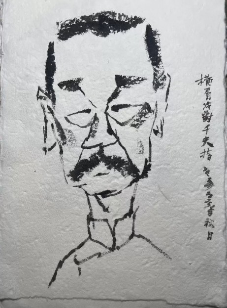 这批水墨肖像是杨小彦教授个人阅读史的视觉副本,这种描绘过程本身亦可视作另一种阅读。传统画论中关于人物画 “传神写照”的记述颇多神话色彩,但世人的期待不过是画得像照片一样以假乱真。摄影术的发明早已宣告了错觉主义绘画的终结,虽为油画系科班出身,杨教授无意于陷入“写实”的徒劳炫技。真正困难的是,如何离开照片式的精确写实,用寥寥数笔画出这些著名人物独特、深刻甚或象征性的一面,或者说是“以其人之道诠释其人之相”。正如手稿所呈现的,每幅看似信手勾勒的人像都曾数易其稿,当他反复推敲画法时,人脸便是一本深邃万千的待阅之书,这种以脸为书、且绘且读的行动,面向的不是特定的著作学说,而是对学人个体生命的独特体认,甚或可以说是一种借助对人物形象的表现性描绘而达成的“读人阅世”,一种言简意赅的视觉评论,其风格追求的是对人物的思想、性格、趣味乃至轶闻的匹配或阐释。