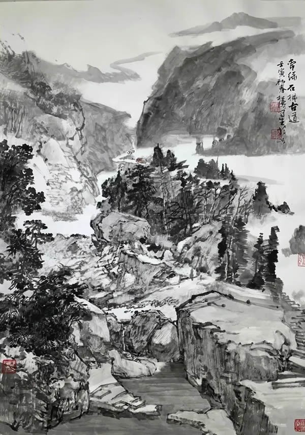 骆松涛浙江富阳人,中国美术家协会会员、中央文史研究馆书画院研究员、浙江开明画院副院长、杭州市美术家协会艺术指导委员会委员、杭州开明画院常务副院长、杭州市富阳区美术家协会主席、黄公望研究会副会长、西湖国际美术家联谊会常务理事、民进中央开明画院画师、富阳区“德艺双馨”文艺工作者称号获得者;2015年举办“富春松风”骆松涛书画作品个人展,并出版发行《骆松涛画册》、《守真志满》。杭师大美术专业毕业,民进会员、教授。对中国画、书法、雕塑、实用美术、社会伦理学等有广泛的兴趣和研究。作品多表现家乡山水,对富春江山水的灵秀情有独钟,深受各界广泛好评。近年来,推出了一批传统兼具创新风格的山水及主题性的创作作品,在全国各大美展中获奖、展出。