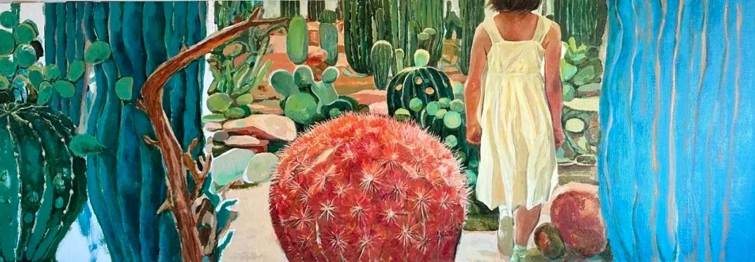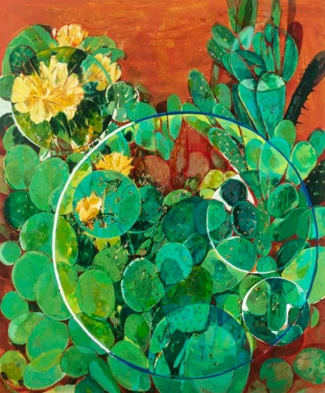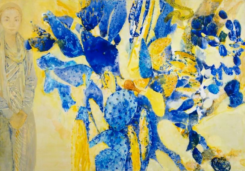 康蕾喜欢阅读,尤其喜读魔幻现实主义作品,但她更热爱实际游学于真实的世界,用自己的眼睛体悟观察,以印证书籍中的记录及前人的感悟。她对于世界不同区域不同文化采取兼容叠加的方式予以吸收,再通过自己的作品印证她对于丰富多彩大千世界的认识和思考。世界的辽阔与无限性,生命的精微与有限性,成为巨大的觉知痛悟。生命如花,从微弱到繁盛再到凋零,知觉之后,康蕾的选择是在画面中建构出属于自己的世界图景,这就是康蕾的《乐园》系列,超越时间和空间,超越现实,让不同地域、不同时代产生的文化传统与今天的时空以写实语言幻化成独特的新时空,那些花朵儿在这个乐园中,弥合了所有的冲突,所有的伤痛,支持所有的蓬勃生长,生命力在这乐园即将达到能量的巅峰。