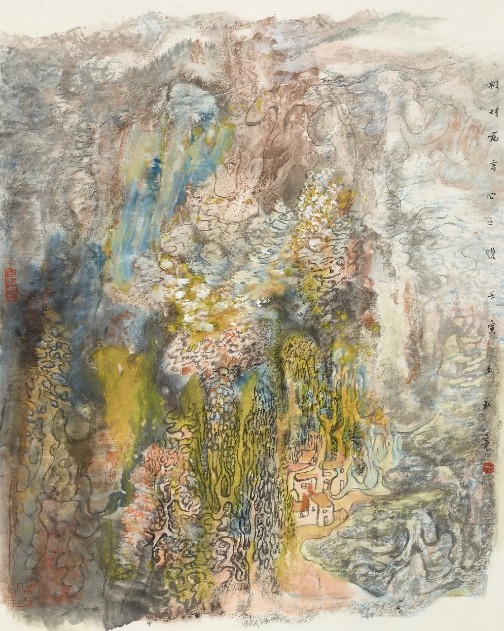 此次展出的作品皆是近期的小品之作,是以笔墨精神氤氲色彩旨趣构建山水新形式的尝试成果。在此,真诚地敬请同道及观赏者雅正赐教。