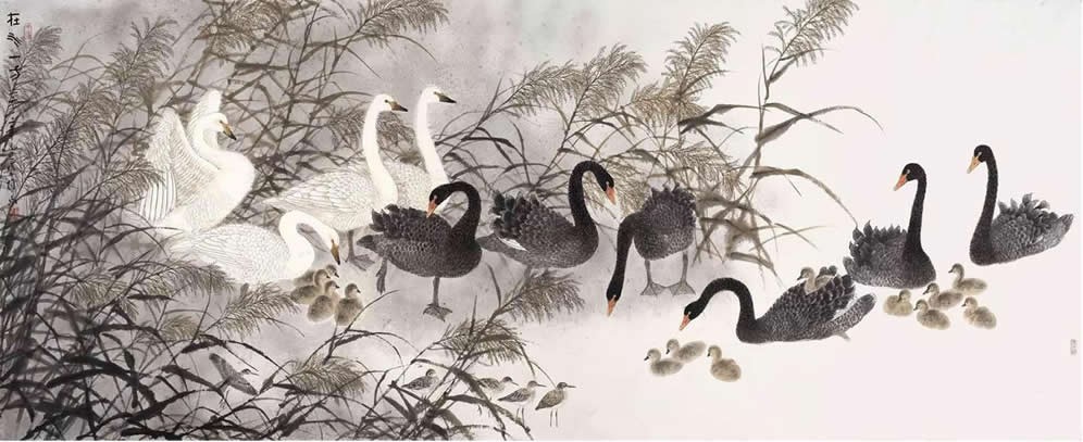 根据策展人介绍,方楚雄师从岭东画家王兰若,有着坚实的绘画功底,受过传统国画和学院写实造型两方面的艺术训练。他长期钻研花鸟画,专攻花鸟和走兽翎毛,以淡雅的色彩和生动的构图,完成具有独特品格的花鸟画艺术。