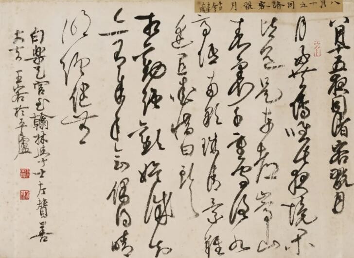 王客好酒,从而放任自我,《新唐书》中张旭“每大醉,呼叫狂走,乃下笔,或以头濡墨而书,既醒自视,以为神,不可复得。”王客亦是如此,“淋漓锦袍,颠倒玉山”,其一脸络腮胡、倒卷长发,个性天真率洁,大气中透露着儒雅。俞丰曾文:“予一日遇王客著圆领汗衫,见其颔下剪落一角,褴褛悬鹑,殊为窘怪。予大不解,问何故,答曰:‘衣领细紧,束勒颈项,一剪得解。’”东坡论传神,谓:“具衣冠坐,敛容自持,则不复见其天。”王客乃性情中人,他曾言:“书法对我而言,是人生的态度,我们的生活是限定的,但是书法可以使你不断地塑造自己,书法是我人生的远方……”这些年,他一路追逐,其中艰辛不言而喻,人也只有经历风雨后才能逐渐成熟。苏轼经历乌台诗案,被贬黄州,写下了著名的《寒食诗贴》,凝重、厚实的线条表现了顽强的生命活力和包含一切的态度,豁达、乐观的人生执念也正是王客心向往之的人生高境。