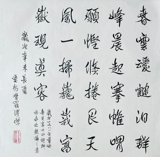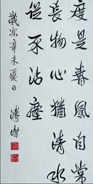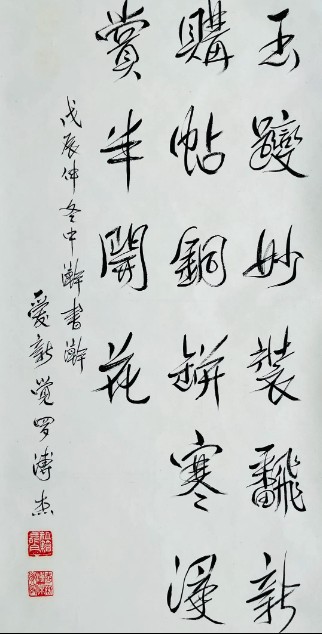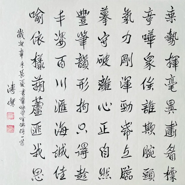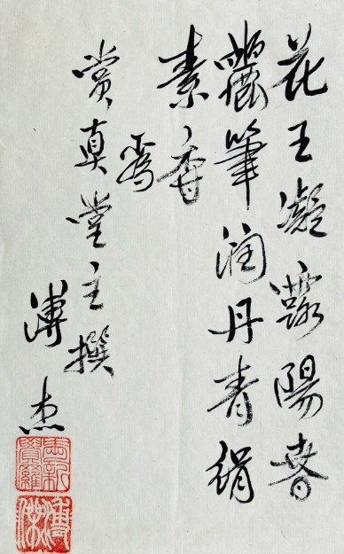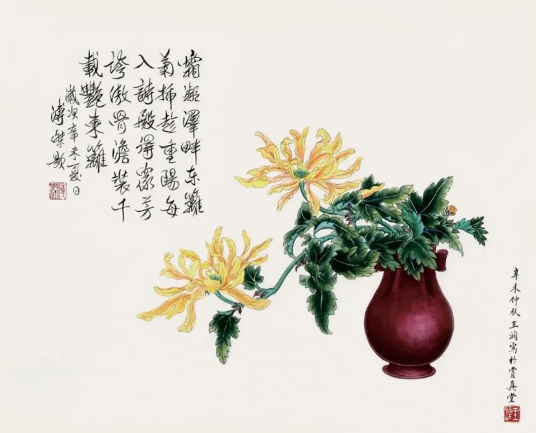 本次藏品的丰富构成,书法与画与人三者之间密不可分的关系,反映出了“文化”的多元含义,从侧面勾勒出一幅多元的“精神地图”的轮廓。开篇展出了溥杰先生为王润先生题写墨宝“赏真堂”“王润中国画册”“花王凝露阳春丽,笔润丹青绢素香”以及带有王润上款的书法作品,这些都是见证在那个时代忘年交之间的那种信任与关怀。中篇结合书画合璧作品展开,以诗入画不仅体现画者的诗画素养,更在无形或有意之中将诗中的意境外化出来,使得欣赏者能更加直观地领略诗与画中的共同意境。故古人以“诗堪入画方称妙,画可融诗乃为奇”来赞誉题画诗。尾篇围绕溥杰先生的书法作品展开,溥杰先生从8岁起到17岁为止,从上午8时到下午4时除休息外均是读书时间,后经陈宝琛介绍来的老夫子赵世骏负责他的学业。《溥杰自传》中特别提到了他向赵世骏学习书法的情况,起初描红,然后写仿和跳格,最后则是临贴。一开始临摹欧阳询的《九宫格》,然后摹写虞世南的《庙堂碑》,但他本人不喜欢欧体字,喜欢赵老师的褚字于是才有了我们今天看到字体。展览中重量级作品曾是溥杰先生写的《用笔偶得》七律诗,这首诗完全把他自身对字体的理解聊以说明。