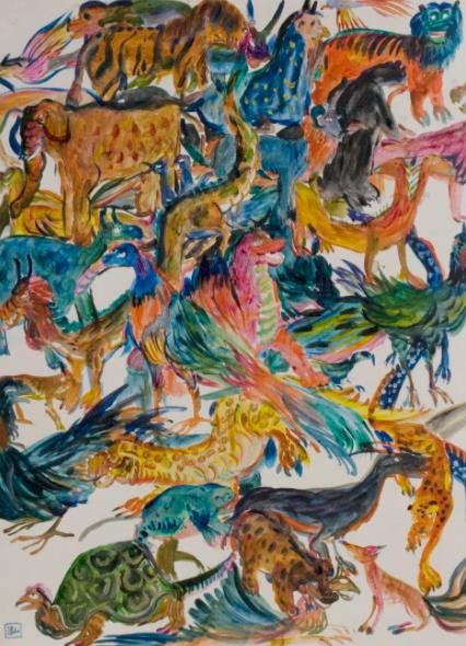 2021 年 9 月 11 日,“李继个展——山海经绘”将于南希画廊拉开帷幕。展开《山海经》中的一页,书中的文字带动脑中的遐想一闪而过,在岁月长河中流转千年的浪漫传说被艺术家李继绘于纸上,揭开了上古先民对世界天真想象和探索的帘幕,将山海之大,人心之象展现于我们眼前。这一系列的作品似于混沌初开中诞生,带着未经打磨的稚拙感,生命力与绚烂感,宛如上古先民吹响狩猎的号角传来的野性召唤,唤醒了人们的图腾追忆和上古远思。