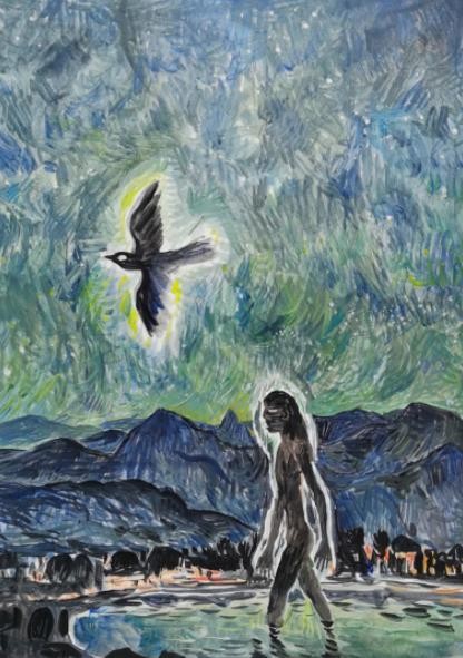 有物混成,先天地生。人法地,地法天,天法道,道法自然。这是蕴藏于华夏文化基因中的写意精神和自然古朴的思想。李继以“本真”为原动力,将东方审美诉求与西方技法理念相结合,仿佛吟游诗人一般在纸上肆意挥洒,用自己个性化的艺术语言重新解读字里行间透露出得瑰丽画面,将《山海经》光怪陆离的故事呈现在我们的面前。精怪异兽于纸上奔腾,先民与灵兽在同一片土地上行走,踩着探索文明的足迹一步步走向我们。