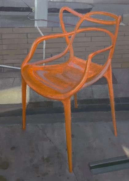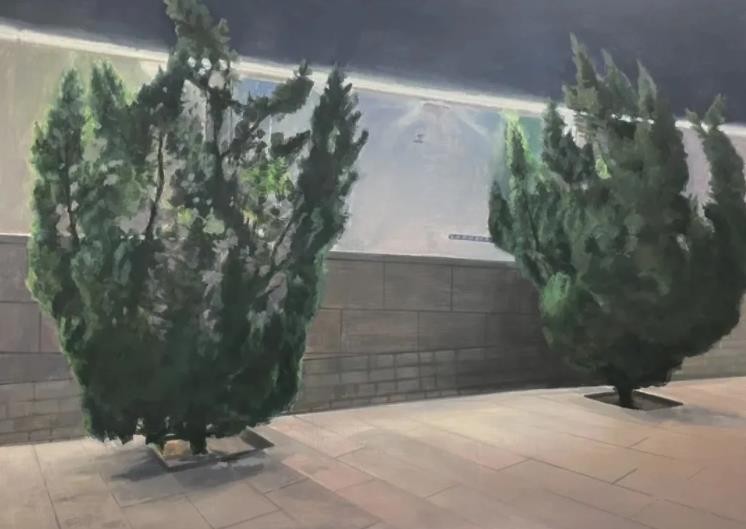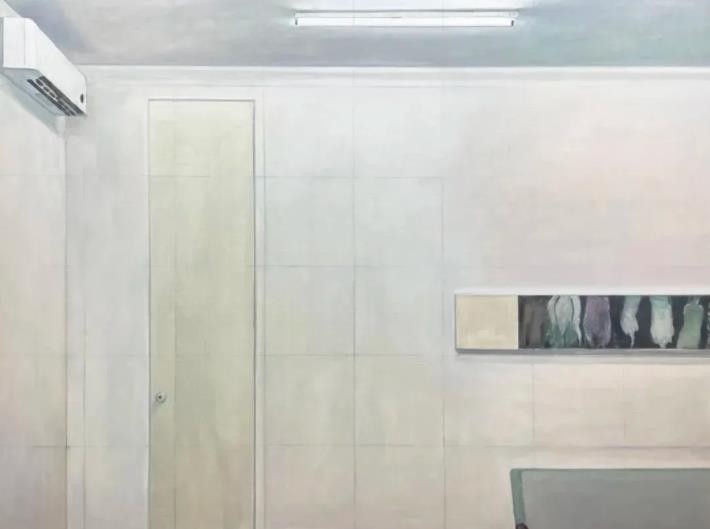 当初从微信推送里看到彭育松作品的时候,并没有留下太深刻的印象:绘画的能力当然很不错,事实上,像《后座》《大合唱》《天籁》等作品的本身是很完整、深入、并且极富艺术感染力的;《Jean》《Ryoko》等小幅图像化的肖像作品,也体现出对人物微妙情态的敏锐感受;《水槽》《暖气片》等寻常的日用物品也描绘得足够沉静、庄重;《阳台》《空椅子》《游乐场》等也有让人心里不免“咯噔”一下的内在表现力……但总体上,他的作品常常有那些几十年来在中国绘画界流行成俗的著名艺术家——阿利卡、图伊曼斯、里希特,如此等等——的影子,这无疑阻碍了对他作品的深入研读。印象深刻的反而是另外两个方面:一是他绘画语言兴趣的广泛,似乎在“表现性的写实绘画与表现性的图像绘画”这个特定领域中流行过的代表风格,他都有所涉猎;二是他运用不同风格的绘画语言都颇为娴熟自如,尤其对吕克·图伊曼斯用力颇深。