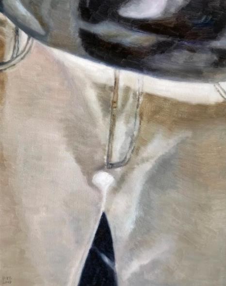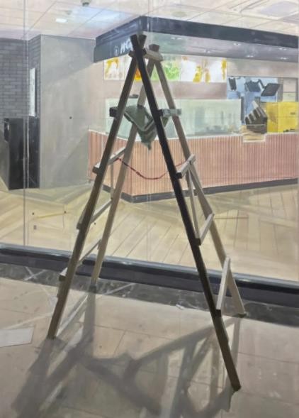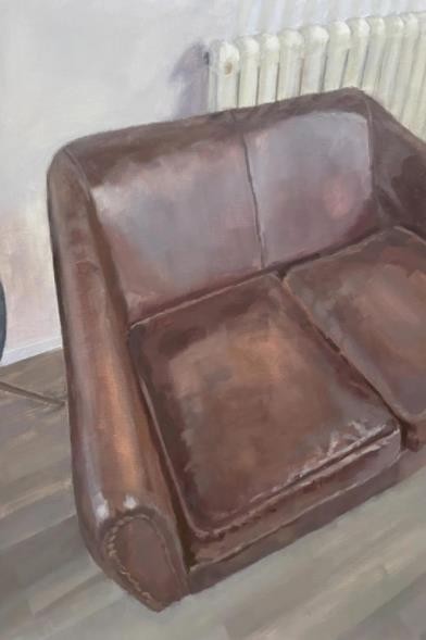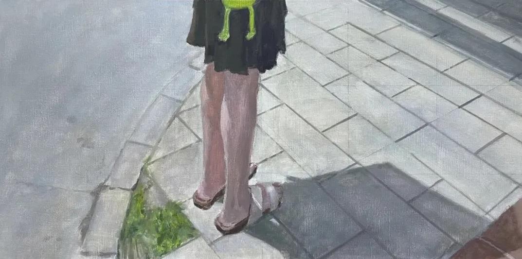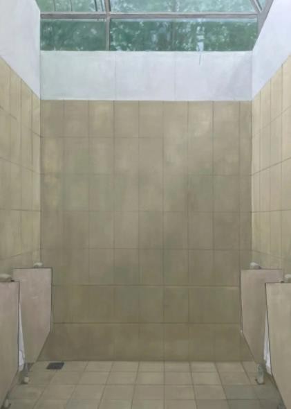 不过,在倾心于图伊曼斯风格的同时,至少从2020年起,彭育松也开始了其他种不同的语言风格的实验。比如《两个男人》《日常》等作品显然受到刘小东的现实主义绘画的影响,《Jean》《Anna》等作品则是在尝试里希特的手法,《黑裙》、《卫生间》等能感受到张恩利的薄涂画法的吸引力,《沙发》则多少有些弗洛伊德的意味……此外还有像《夜色》、《变电室》、《椅子》等风格不明而又趣味各异的更随性的作品。这样的左冲右突,不仅表明他在积极探索图伊曼斯式的当代观照之外更多的可能性,也表明他对绘画艺术的思考正逐渐从“当代”转向“中国”和“自我”。