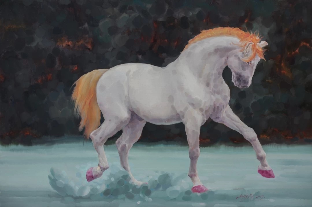No doubt, the horse is a symbol in Qiu Guangping's painting. Horses manifest his reflections on history, culture, and reality. As we know, in the current world, people in many places still suffer from war and poverty. Even people who live in relatively peaceful environments also have to face various kinds of social inequality and corruption. Through the visual image of the horse, Qiu Guangping observes, experiences, and critiques the various problems of society. Therefore, Qiu Guangping's horses have been constructed as a symbol of the human spirit, formed with strong social criticism.