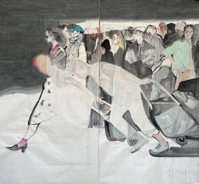 然而,危机之中也孕育着转机。 一批当代艺术家正以辩证的视野重建中国画的主体性:他们将山水意境转化为都市中的精神漫游,在东方与西方、传统与当代的碰撞中生成新秩序,并让绘画重新扎根日常生活。与此同时,绘画的生命力也在理性与诗性的平衡中复苏:从对抗算法效率的“无用细节”,到材料边界的突破,再到通过无面人意象重建情感联结,艺术重新成为存在的见证者。