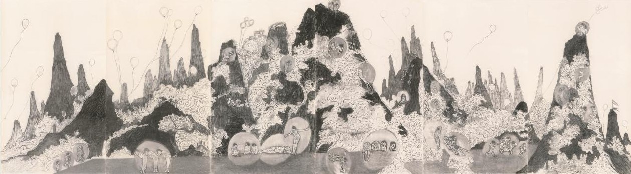 绘画的更深层意义在于为当代人提供一种认知系统的更新。它一方面通过改变物理尺度来重塑体验——譬如巨幅手卷以其迫近的体量,强制性地要求一种“慢观看”,以此对抗快餐式的图像消费,修复我们碎片化的注意力; 另一方面则通过意象的创造性并置(如科幻机甲对话宋代茶果子),打破非此即彼的思维定式,展现文明的共生与演进。这些努力共同指向一个目标:在信息过载的时代,为心灵开辟一条通往精神超越的路径。