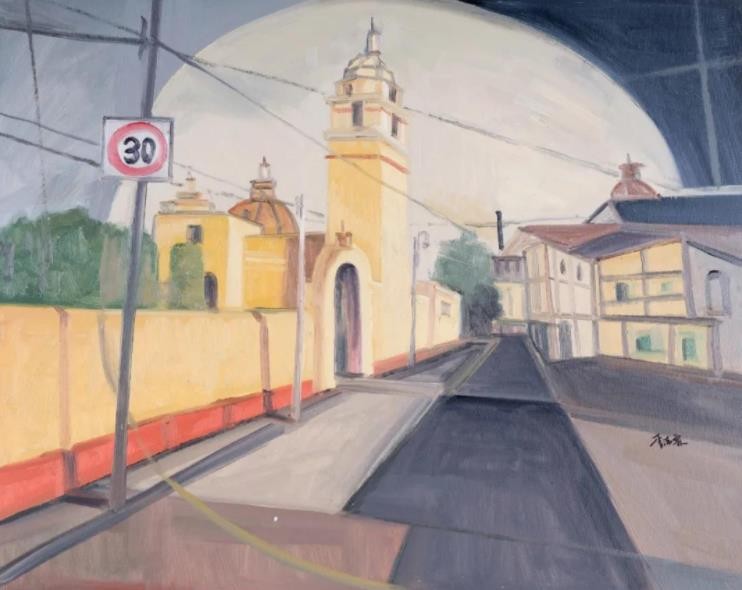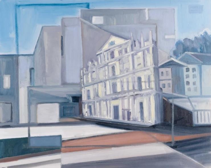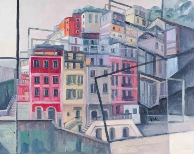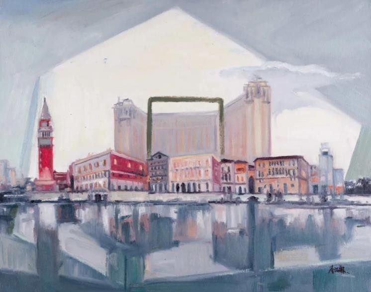 李洁霖的绘画系列作品呈现了两种完全不同的风格,一部分作品以城市为主题,寻找到了自己的基点,略带宗教感的城市景观似乎有着淡淡的忧伤——色彩略显忧郁、图像重叠构置,从精神的内涵上触发着人们的思考与隐忧。另一部分作品则多了一些愉悦的色彩,模糊与抽象交织的画面,简洁而灵动,比之前一个系列作品增添了几许浪漫与欢愉,其不完整的局部与含混跳跃的笔触有着一种恍惚的梦幻感。李洁霖的作品让我们想到:一个年轻的画家将如何从个体生命经验,从她所生活的地域性出发,开启对世界的绘画性体验?我们在李洁霖的作品上似乎可以看到她的思考与追求。李洁霖非常幸运的并很快的找到了自己的方式——作为一个青年人、一个自幼就在南方海边浮华都市(深圳、澳门)生活长大的孩子,在绘画中表达出我们这个时代的城市境遇与自我的寓意。