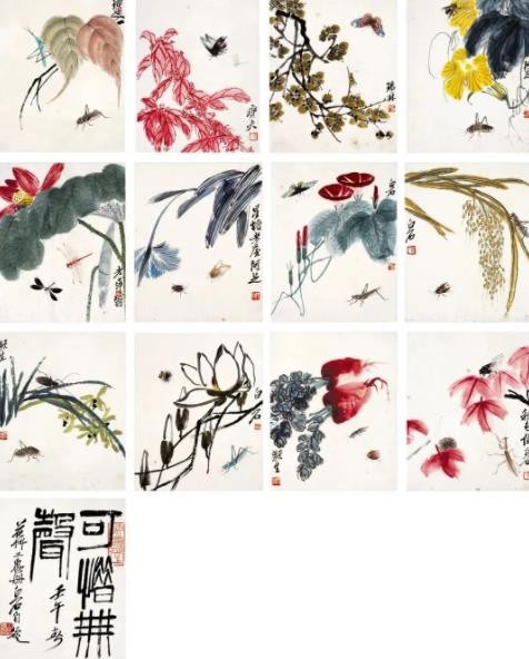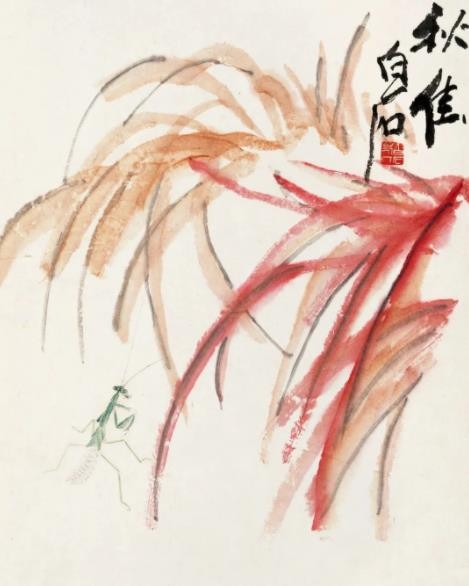 齐白石起初从明清大师入手,画风冷逸,定居北平后衰年变法,以自然的天趣,妙在似与不似之间,开辟出高度概括的花鸟画写意画法;同时大胆吸收书法用笔入画,一变五代以来大减笔人物画飘逸奔放传统,以篆隶笔法用于人物描写,憨拙生趣,极富生活哲理;其山水上追六朝,删繁就简,大胆剪裁,一反明清以来的程式,极具独创与革新性。其笔墨暗合极简主义,也与现代绘画的走向相呼应。