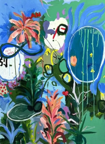 王悠的作品中有呼吸的空间,她以充满活力的笔触、鲜亮敏锐的色彩,与不设底色的大胆留白,仿佛为画布摘下了口罩。这首先得益于她对绘画与生俱来的热爱和体认,与未经学院训练的背景,通过不间断的自我摸索与作画过程,王悠的画面呈现出富有生命力的形象与令人羡慕、毫无包袱的自由。