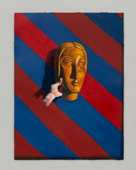 接着便进入艺术家创作的第二阶段,将重组的“遗存之物”转化为画面。他不断为第一阶段的产物找寻一种物化但又富有诗意的表达方式:多视角的构图、戏剧化的光影、特别加诸于人物之身的刻板动作,仿佛使得画面上的时间停摆,又带着巨大的空洞感和不确定性。与此同时,艾克曼斯又继承了佛兰德艺术中写实精美的风格,这使得他将画面始终保持在一种确定的氛围中,显得胸有成竹。当由他亲手编排塑造的“遗存之物”在画面中被刻意放大,以一种奇突的方式占领观众视线时,其余被精确勾勒出的留白部分则保持沉默与哑然。在这一过程里,艺术家的主观情绪又被其绘画中蕴含的形式感逐渐消解,而观众也得以随时退出画面回归到客观世界。但显然,艺术家已经用自己的绘画启发出一种崭新的观看视角,以这种视角去重新观看日常生活,人们或将产生新的幻觉。
