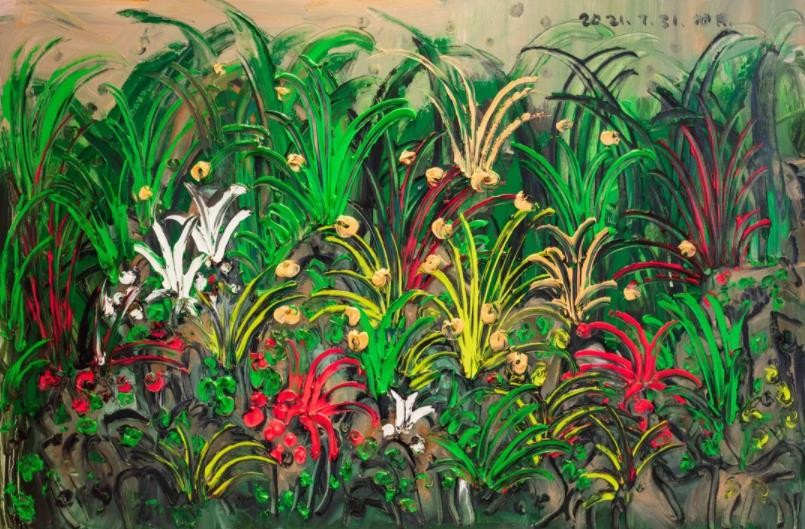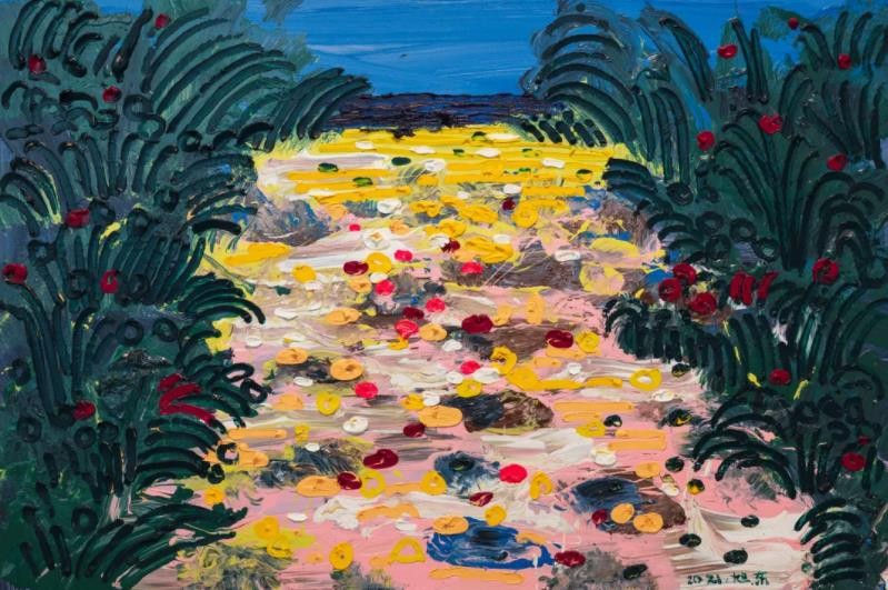 Although the creation skills of Zhang Xudong and David Hockney are different, their pursuit of life state and psychological perception can be said that it is the same way to go. The scenery after Mr. Zhang's generalization with bold and unrestrained color and wanton stroke has been beyond the object's specific or visual charming. After the deconstruction of the real object, the artist is under an extremely focused state of mental flow, he will quickly refactor those pieces of colorful, diverse landscape works with an impressionist style of about picture, color and the different combination of lines . When we watch these landscape works, the sense of scenery brought by the picture is very important to the viewers. The brushstroke, texture, color, composition and other factors of the works together constitute the sense of scenery. This sense of scenery will leave a mark in our minds, unreal as well as real.