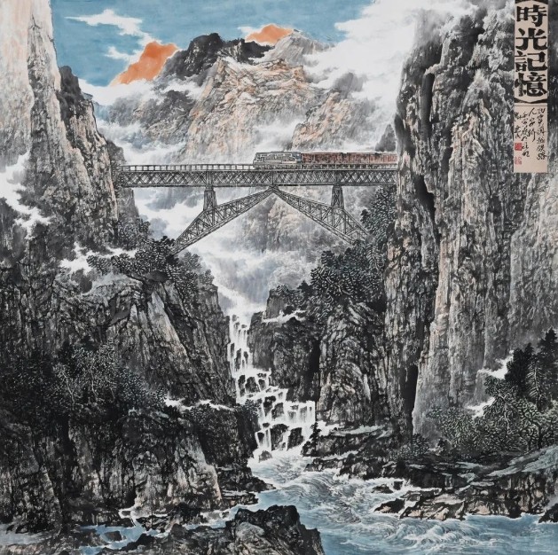 杜建民先生还十分注重师法造化,足迹几遍滇云,此次展出的《雪山》《人字桥》,意境新奇,远近布局相连相应,其幽深、苍茫的韵味充盈画面,体现出一种积极向上的情怀。