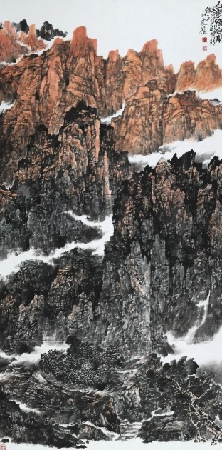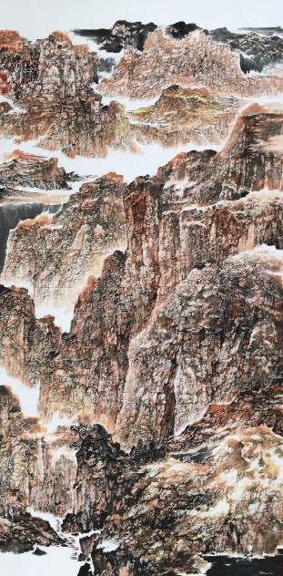 这次展出的《咆哮》、《醉美山阳》、《爨》、《时光记忆之三》、《滇池风雨作龙吟》、《白云青自闲》等巨幛宏构,气魄很大,新枝老干,或挺拔或疏朗或横斜,花萼秀叶,或清秀或天真或怒放,笔墨超纵、格调甚高。《云阳梯田》、《丝瓜香》、《云巅听涛》等尺幅,能做到画中有诗、画中有趣,设色自然淡雅,构图巧思,极富生意。率性挥洒的《甲骨小鸟》、《月寒天上》、《神州国色》、《瓜鸟图》、《洗尽芳华》、《栋梁图》等作品,与乃师吴悦石颇有异曲同工之妙,笔迹流畅,顿挫老道,画面简洁却饱满,颇为别致。