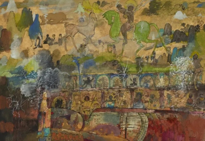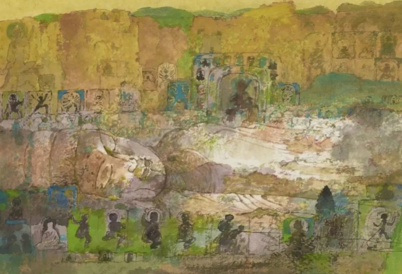 2012年以后,我创作的重心越来越倾向于主题性创作,主要是围绕国家重大的决策部署、重要的时间节点和重大的历史事件等展开。其中,2013—2015年,我第一次尝试将历史人物植入山水中,用现实主义精神和浪漫主义情怀,来观照历史和现实。通过把天地大美、万物和谐的意境与革命领袖的忧患意识,把家国之思同山水精神自然而然地融合,试图从普通人的视角出发,来表现宇宙天地间历史人物的亲切、平凡、仁爱与诗性,人与自然、人与人之间的平等、相洽,进而表达一种对天、地、人关系的新的理解和思考,这就是“乾坤大义·道输八荒”系列;2014—2018年,受国家“一带一路”倡议的启发和中国国家画院“‘一带一路’国际美术工程”的推动,我的近200幅“一带一路·人类文明”系列域外写生作品整理完成。在这一系列中,我用中国水墨语言,以打破时空界限、甚至以超现实的心理时空的意象叠加组合同写实技巧相结合的方式,表现“一带一路”沿线文明的人情风貌,力图凸显“一带一路”所内含的人文精神,诠释“人类命运共同体”的精神旨归;近五年,在对中华优秀传统文化的创造性转化和创新性发展的践行与探究过程中,我再次重新深入到传统经典的文化典籍中,寻找创新创造的灵感,由此创作了一系列以其为母题的作品,比如,“逍遥游”“山海经”“永远的敦煌”系列以及《黄河安澜 天下大穰》等作品。