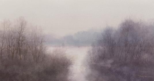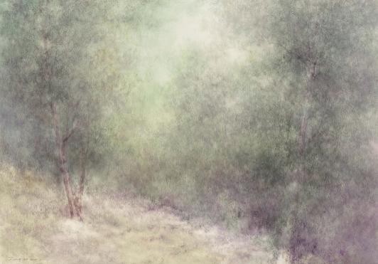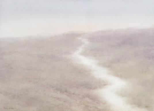 她用心学习中国画的神韵,追求水彩画的意境、内涵和诗意。以放松的用笔,抒发自己心中的真诚。她画面上有很多意想不到的东西,有些似乎没有画到的地方,但是味道到了;有些内容画得很概括,但是用意到了;她试图从具象的表现往意象创造跨越,在探索水彩画中国化的路上有了初步收获。
