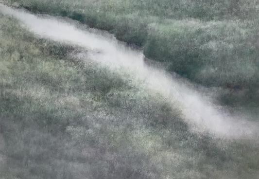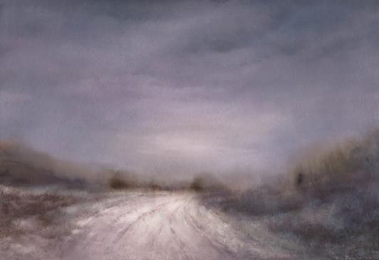 乡愁是一个富有挑战的美术创作题材。蒋正杨在对乡愁内涵和艺术表达上,取得了独到成绩。她把握了乡愁的模糊性,把一种思念和情绪,一种模糊的回望,在并不明晰的地方彰显出深切情感;她理解了乡愁之蕴,那种失而不可得的状态,试图把乡愁凝炼为永恒性瞬间;她笔下的乡愁含着不可名状的惆怅和悲悯,带着一层淡淡的忧伤,画面的情调和色调在灰度中微调。