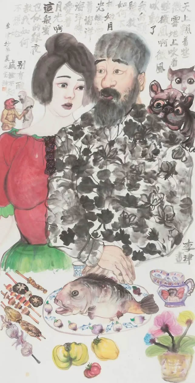 我看到好多这样的女孩儿,一脸的稚气和单纯,挺感人的,倒给我很多启示。后来我就把它转换成了另外一个东西。其实我在乎的并不是表面的传达,也很少像画风景一样去写生。我去任何地方每次感受到的更多是气象,在一个新的环境里综合当下和传统文化的底蕴,进而产生启发和感染。在798画的白菜,明显水亮,明显干净,明显年轻。让我想的就是那种特别。其实艺术是这样,它不是像我们讲的对等,你看见什么就画什么。它是到内心里以后,有些气息是完全可以转换题材的。题材不是追求的目的,是寻找一个最适合表达的概念和选题,这个是最重要的。