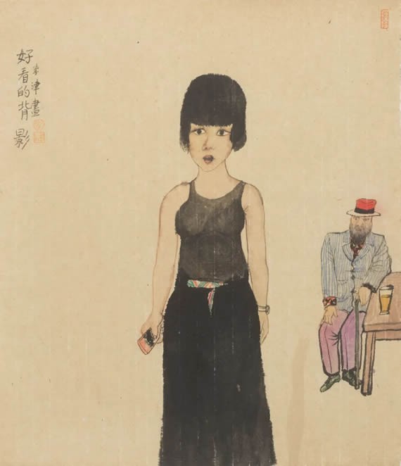 我原计划在驻留中安排一些活动,但很不巧,在展览前把腰扭了。这让我的行动受到一些限制,反而能一直坐在视野特别好的画廊空间里,看798的主干道上来来去去的人流。给我最深的印象还是年轻人居多。这种活力对我来说是一个特别大的印象和收获。所以在视觉影响下,好像突然间我笔下的一些人物也开始年轻了,注入了特别新鲜亮丽的感觉。这种感觉并不是完全具体的,比如人物造型或者姿态,而是一种新鲜感,一种青春的气息。这种气息,就是所谓洁白无瑕吧。