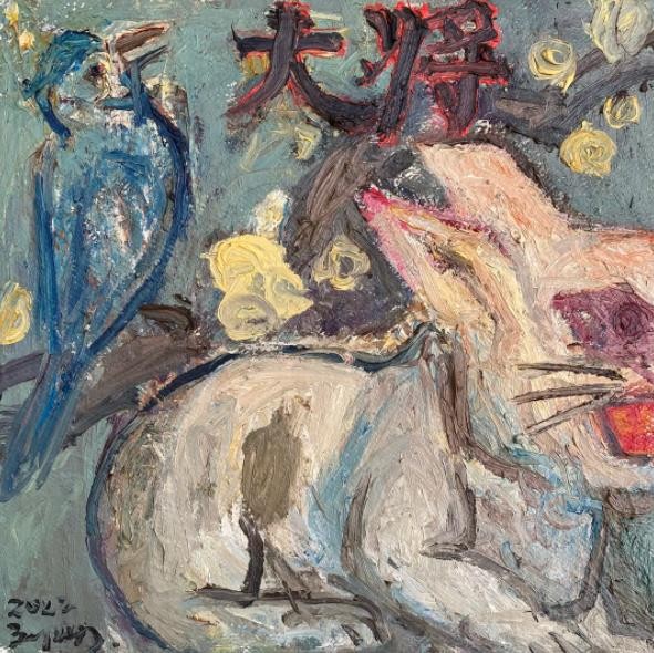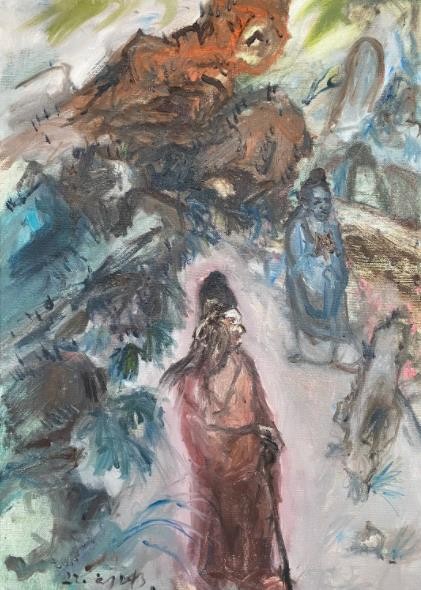 今年,我的画室搬到了宝华山下,离城市更远了,生活状态也随着出现了一些变化。深山对我来说是很有神秘感的,莫名其妙地总觉得那里有奇异的生灵和宝物。于是我就坐在家中地下室想象自己进了那座山,学着古人的样子在小小方阵上游戏笔墨,经营位置,偶尔得了意外的好处,就手舞足蹈,觉得不虚此行。