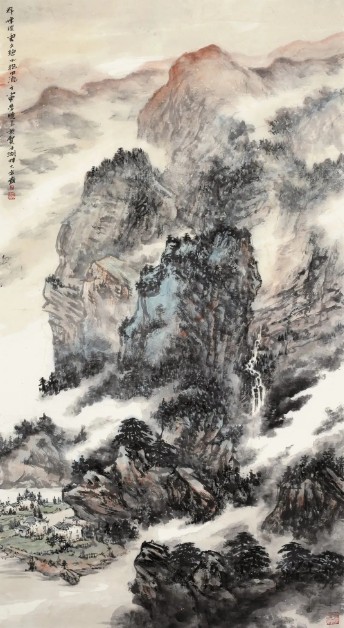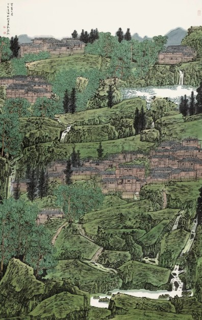 《群峰环云立 碧水抱田流》 方学晓 180×96cm