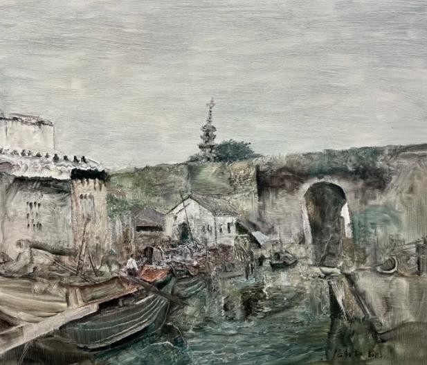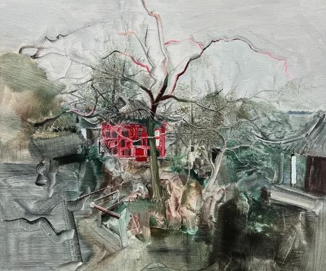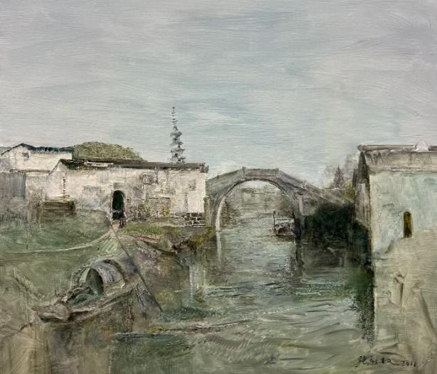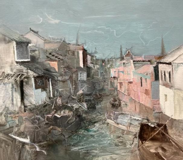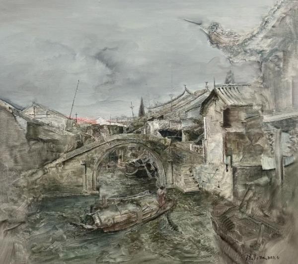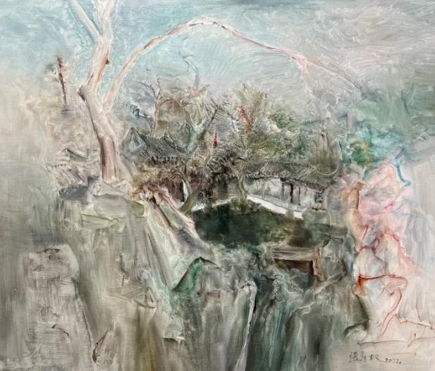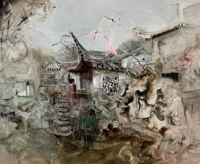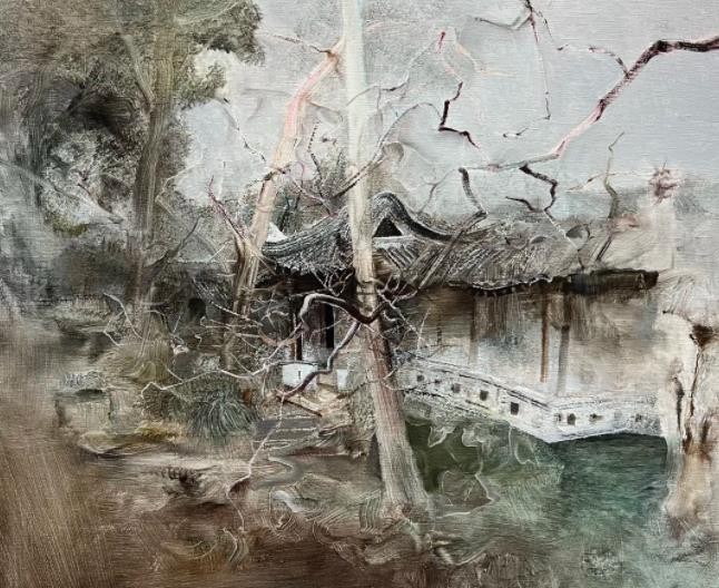 无论是山塘、葑门还是虎丘,无论是留园、耦园还是拙政园,这里都是文人的江南,都是城市山林的梦幻。汉文化美学的纯正血脉在江南延展开来,润物细无声地融进张新权的画笔,以一种中式审美的油画语言诉说出全新的当代美感。中国水墨艺术的写意和西方表现主义的奔放是相通的,不同的文化基因在他的个人风格里融会贯通,互借优长。点染皴擦的笔法颇具书法情趣,偶尔艳丽的用色和对光线的表达又超越了水墨的境域,充分体现出画家以当代人的审美方式驾驭传统题材的能力。作为外来画种的油画传入中国已逾一个世纪,继颜文樑、关良、林风眠、吴冠中、苏天赐等先辈之后,张新权正身体力行地奔走在油画民族化的道路上,以独具辨识度的审美趣味表达出一个当代知识分子的文化思考。