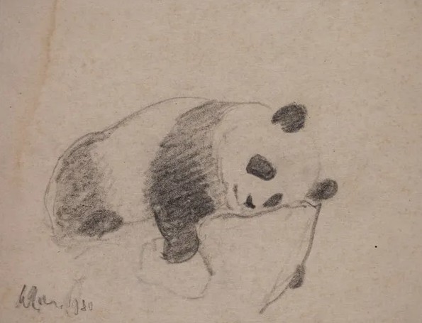 吴作人先生作为美术界的一代宗师,对熊猫的热忱、真切与独到表现,充分体现了他对 人间、世间、意识之间的立场与态度——无限之爱,由此浓缩为对后世的警醒:关爱自然就 是关爱人类,也正是关爱我们自己。