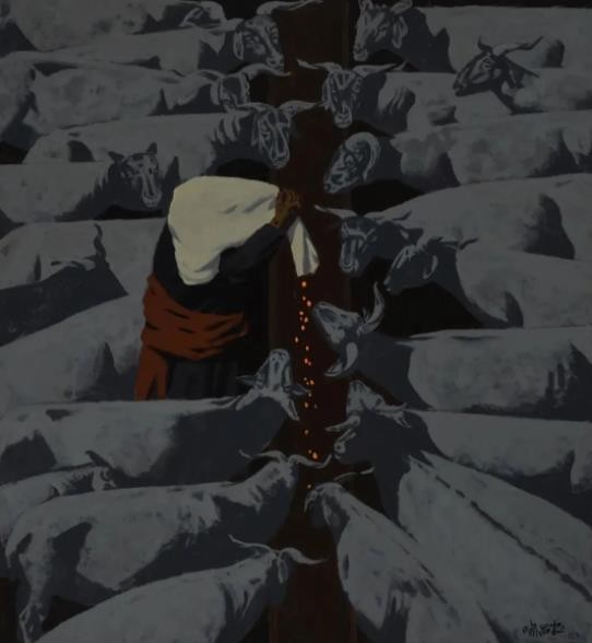 正是甘南这个无比独特的情景与人文历史,不断地召唤着李晓刚、张文平、喻昌农和汪鹏飞四位志同道合的画家走到了一起。他们相约远赴甘南,深入藏区,驻扎在藏民家里。《远山与厚土的呼唤》四人作品联展将呈现他们各自对这片神秘土地的观察和解读。得益于他们长期深入生活现场,深切的体味当地 藏民的信仰和情感,使他们的创作有别于历史上很多以藏区为主题的作品,流露出一种具有象征意味的现代性。