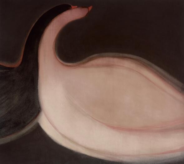 不仅如此,作为一个在传统中国画氛围浓郁的学院环境中,浸淫了二十多年的艺术家,马兆琳的真诚还表现在她对赛·托姆布雷、德·库宁、马克·罗斯科这样的西方抽象艺术家直言不讳的关注和热爱。我们从她笔下的天鹅、马、猴子、老虎、豹子、鹿这些动物的造型手法上,也清晰地可以看出了她的与众不同。简单来说,她的造型里混杂了一些来自西方的异形、畸变、夸张、抽象的后现代手法,她的笔墨技艺呈现出的却又是深厚的传统底蕴,从而造就了一种布莱希特所谓的让观众看戏,但并不融入剧情的间离效果。