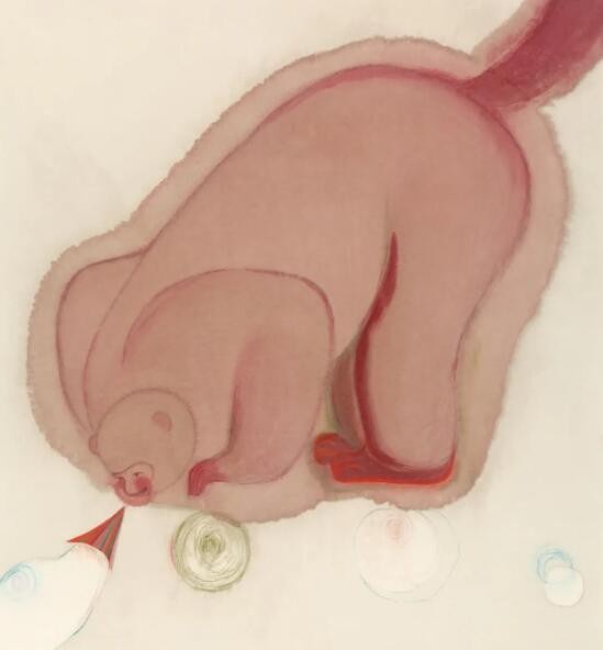 马兆琳的绘画既具有很强的辨识度,又很跳脱、静逸,画面呈现出的质感和氛围,在给人以不同维度的审美愉悦的同时,也给不同智识背景的观众都预留了充足的读解空间。无论画人还是画动物,哪怕老虎、豹子这样的猛兽在她的笔下,也都性情温驯、丰腴滋润,杳无猛兽的粗粝和野性,代之以一副莫可名状的招人怜爱的气质。与此同时,画面中对头和身体比例所进行的异化处理,可以看着是她对真实形象的一种刻意误读和转化,从而藉此来试图冲破符号体制的规训与束缚。