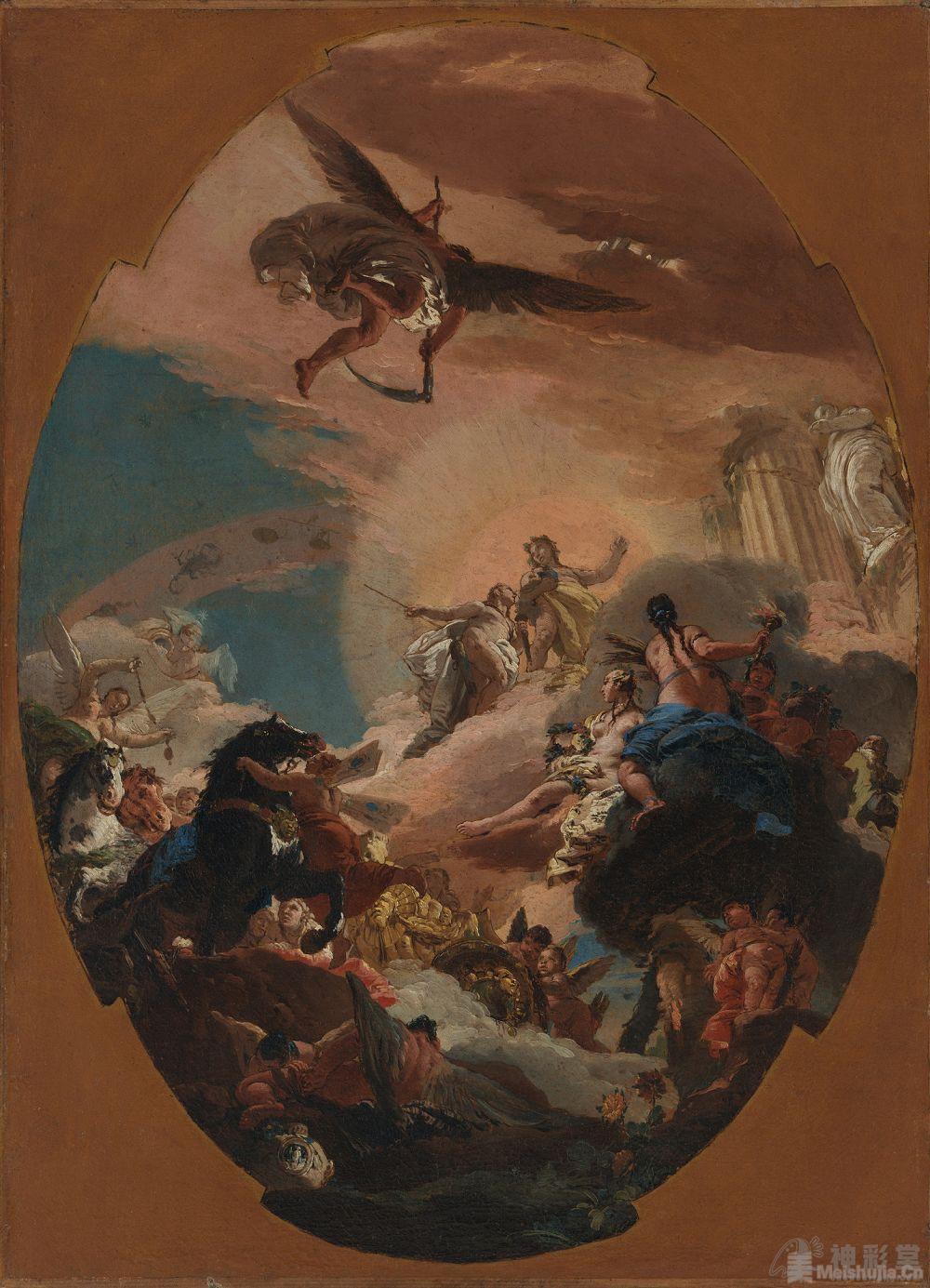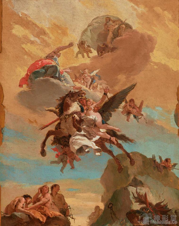 Giambattista Tiepolo(1696-1770)是意大利艺术家,主要创作以圣经和希腊神话为主题的洛可可风格(Rococo)艺术,被认为是18世纪欧洲最重要的装饰画家之一。他一生大部分时间都在当时的威尼斯共和国度过,也多次为欧洲各国王室、贵族、主教绘制画作。